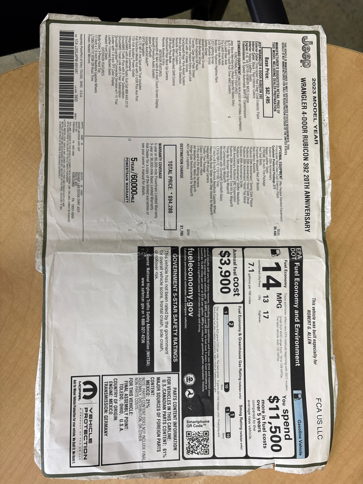 Vehicle Inquiry for 2023 Jeep Wrangler Unlimited Rubicon 4x4